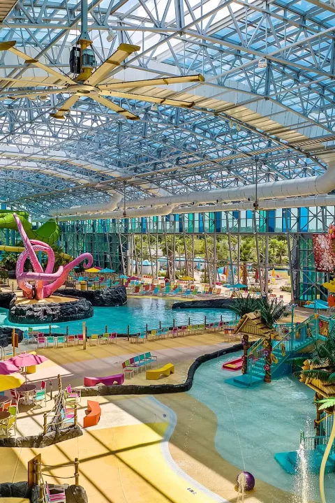 Boasting 23 rides, 6 different slides standing at over 75 feet tall, a zero-entry pool area, and a lazy river, Tropic Falls makes for an incredible day out for all the family. And with a 6,000ft2 kiddie pool, a dump bucket tower, and a tropical play structure equipped with five slides, there’s sure to be something for all ages.